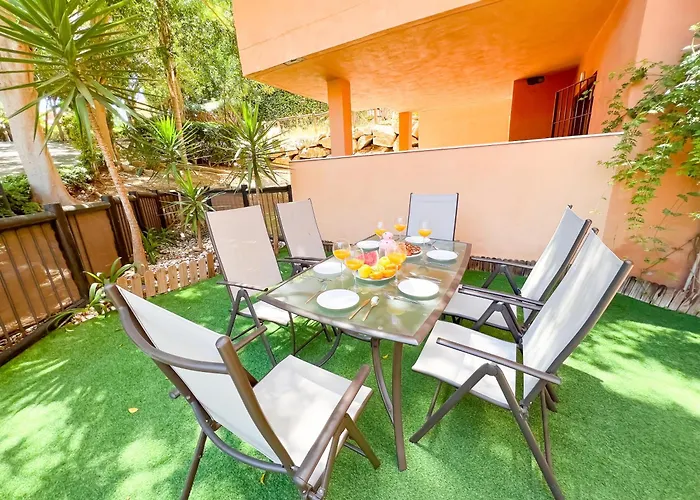 Obiekt noclegowy wyposażony jest w urządzenie do parzenia kawy/herbaty oraz wyposażoną kuchnię z kuchenką mikrofalową, czajnikami elektrycznymi i lodówką. Możesz dojechać na lotnisko Malaga w 39 minut. Obiekt oferuje dostęp do parku wodnego, tarasu i pola golfowego, a także taras z widokiem na górę.